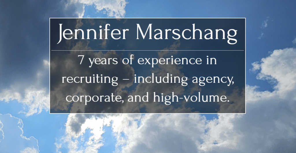 Welcome to The Hire Perspective! I share my real conversations with hiring managers and recruiters to offer different perspectives on what helps candidates stand out during the job application process.Genuine conversation.Real perspective. Newest ConversationJennifer MarschangSenior Recruiter Recent ConversationsJennifer Marschang – Senior RecruiterIsaac Taylor – Sales DirectorKevin Gaither – Sales Leader Up-coming ConversationsDirector of Talent ServicesTalent Acquisition LeadLead Talent Strategy AdvisorHR Consultant Conversations Lore Disclaimer
