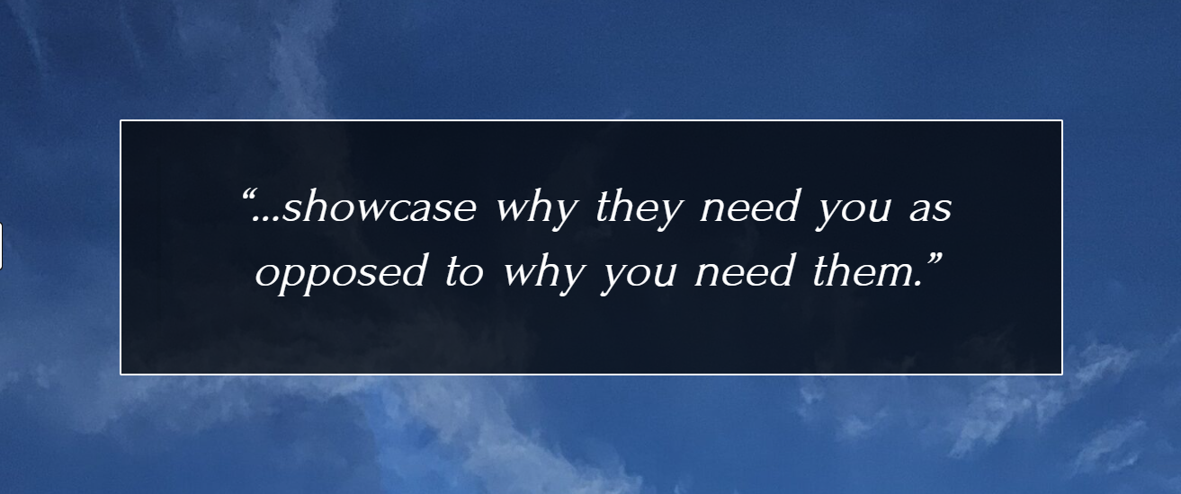 What are you going to say about yourself to them to sell yourself?”