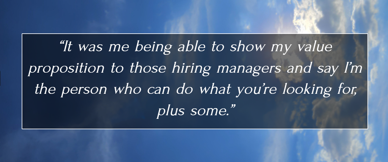 “It was me being able to show my value proposition to those hiring managers and say I’m the person who can do what you’re looking for, plus some.”